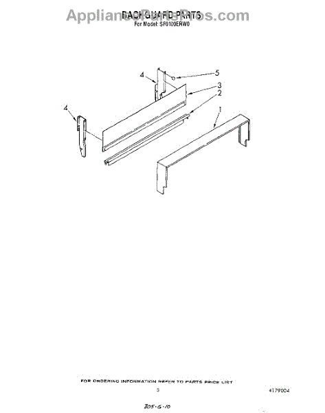 Parts for Whirlpool SF0100ERW0: 04 - Backguard Parts