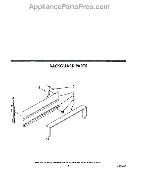Parts for Whirlpool SF0100ERW7: 04 - Backguard Parts