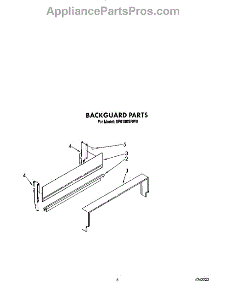 Parts for Whirlpool SF0100SRW9: 04 - Backguard Parts