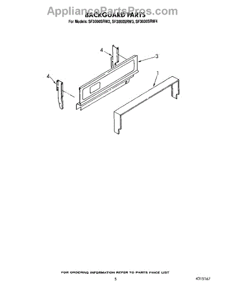 Parts for Whirlpool SF3000SRW2: 04 - Backguard Parts