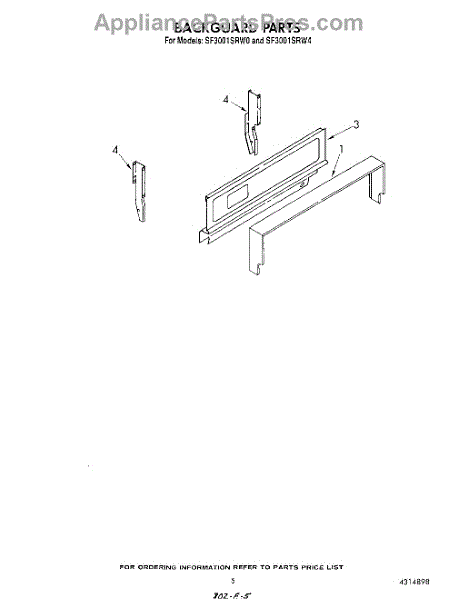Parts for Whirlpool SF3001SRW1: 04 - Backguard Parts