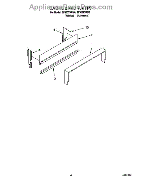 Parts for Whirlpool SF3007SRW6: 03 - Backguard Parts