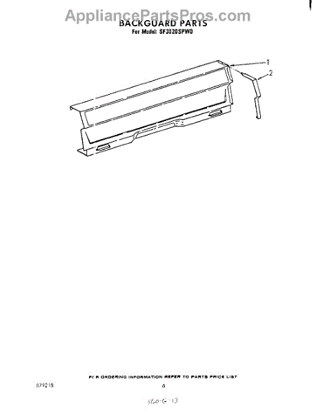Parts for Whirlpool SF3020SPW0: 05 - Backguard Parts