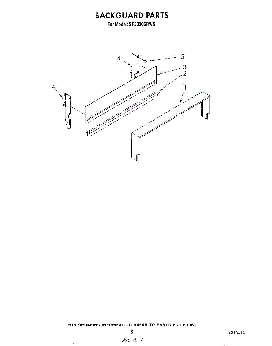 Parts for Whirlpool SF3020SRW5: 04 - Backguard Parts