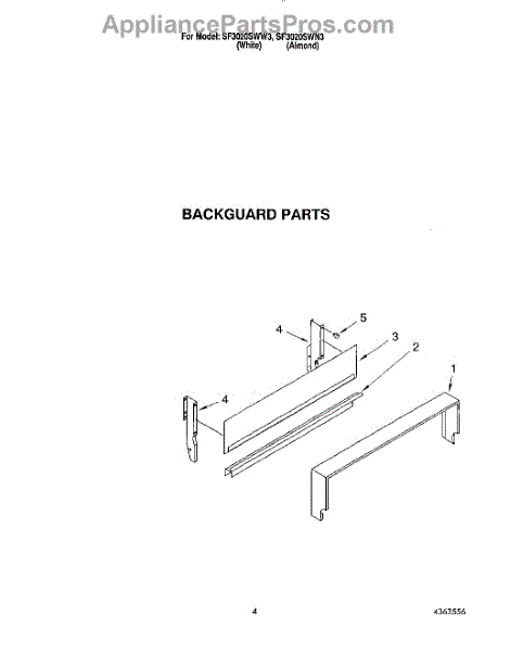 Parts for Whirlpool SF3020SWN3: 03 - Backguard Parts