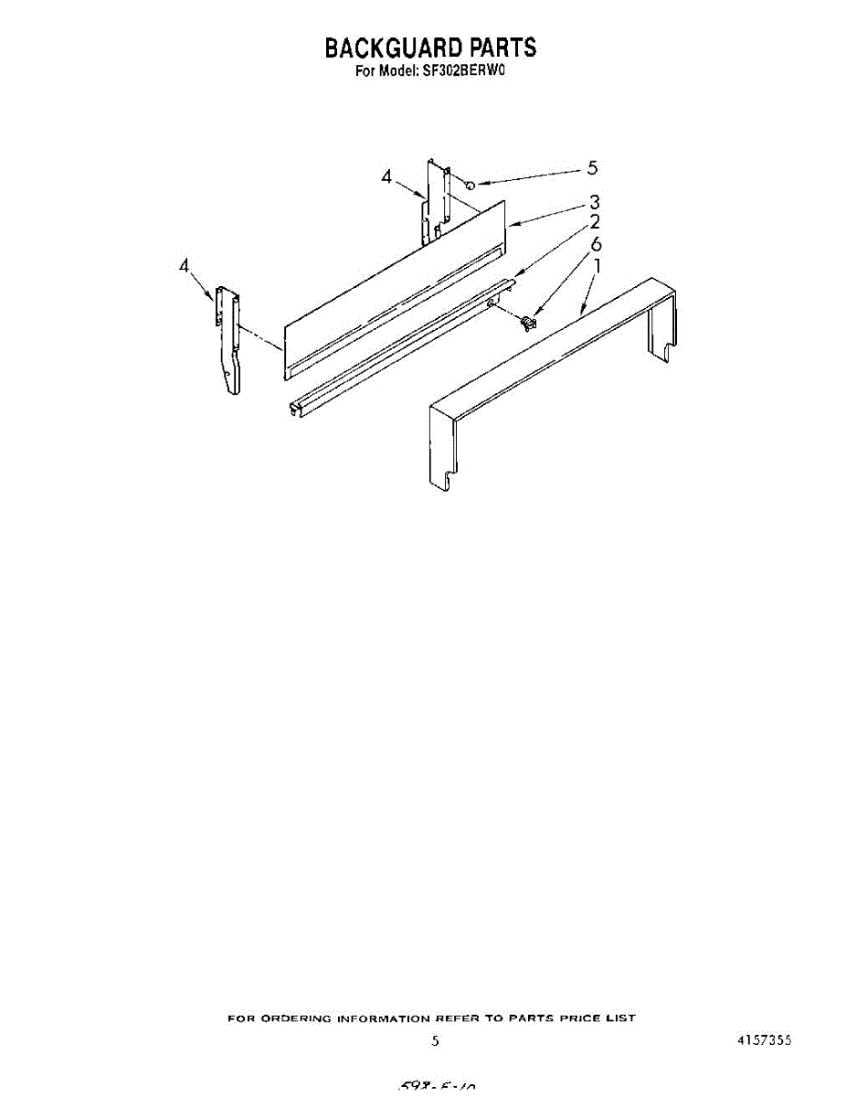 Parts for Whirlpool SF302BERW0: 04 - Backguard Parts