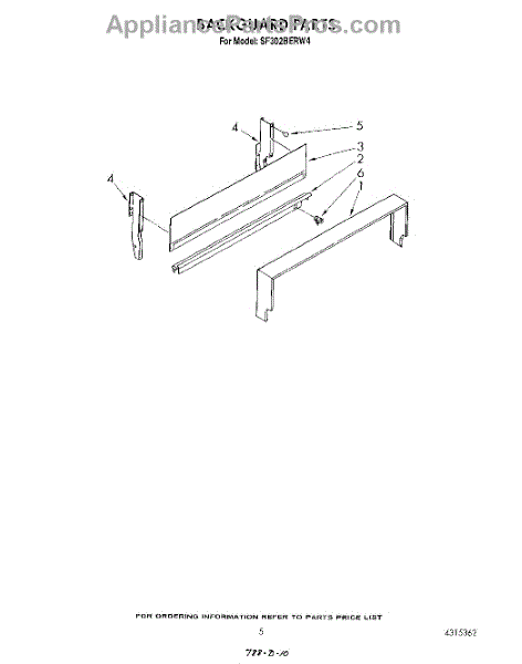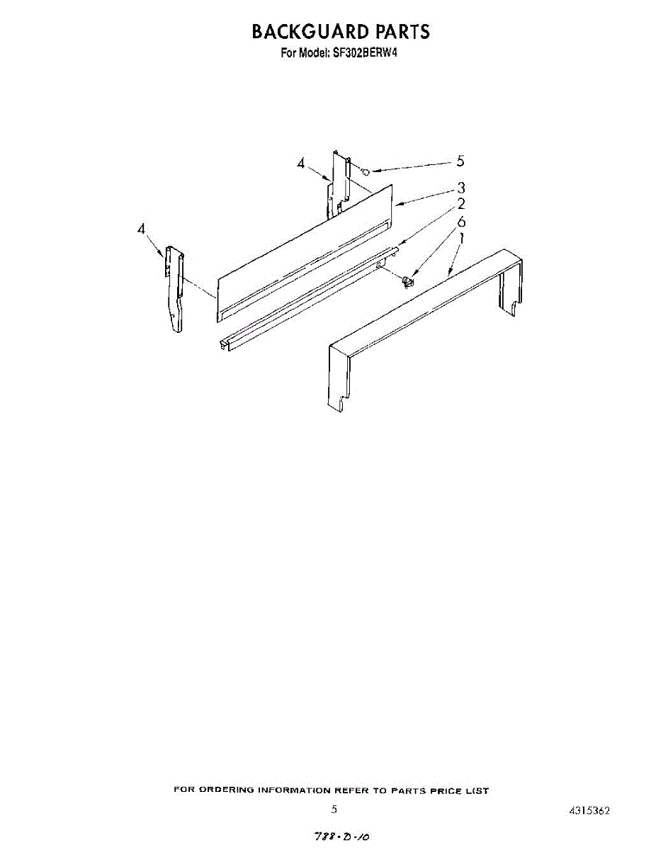 Parts for Whirlpool SF302BERW4: 04 - Backguard Parts