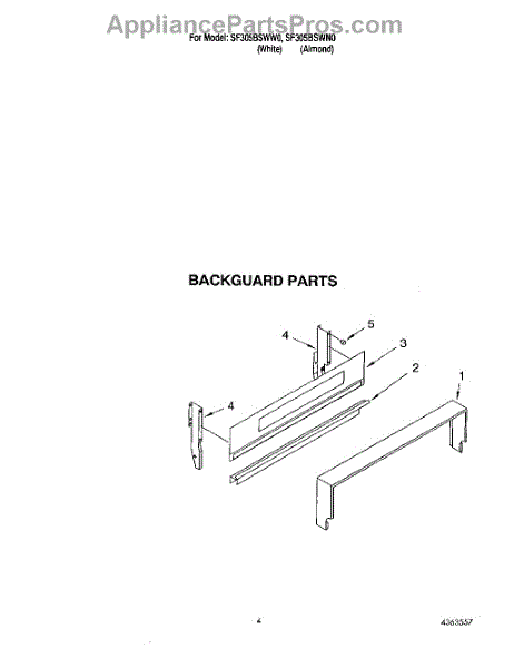 Parts for Whirlpool SF305BSWN0: 03 - Backguard Parts