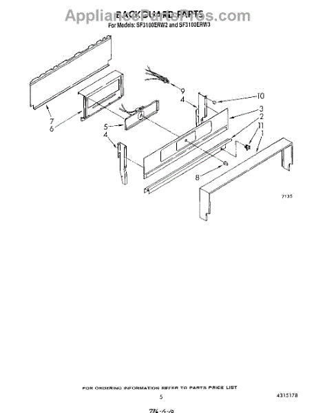 Parts for Whirlpool SF3100ERW2: 04 - Backguard Parts