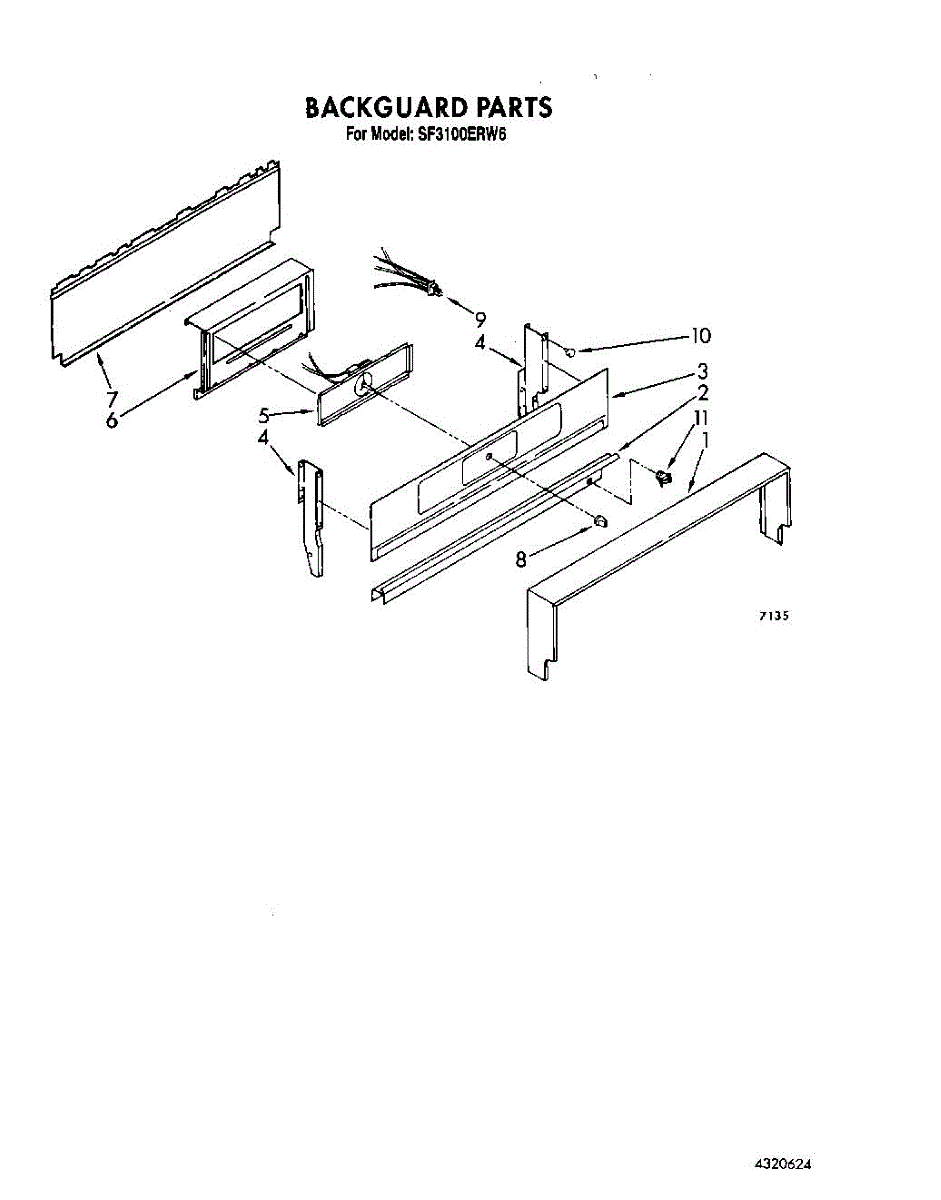 Parts for Whirlpool SF3100ERW6: 04 - Backguard Parts
