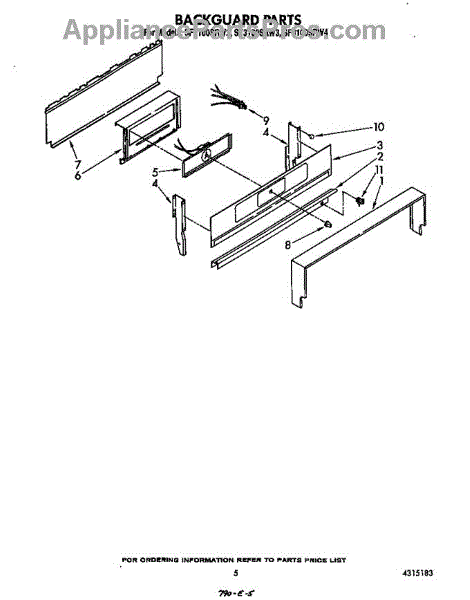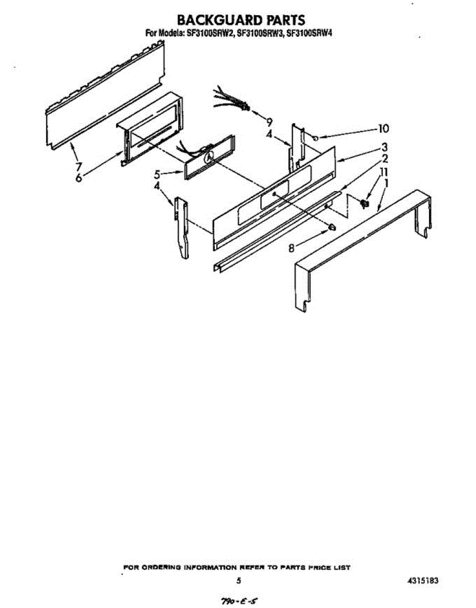 Parts for Whirlpool SF3100SRW3: Backguard Parts