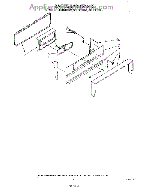 Parts for Whirlpool SF3100SRW4: 04 - Backguard Parts