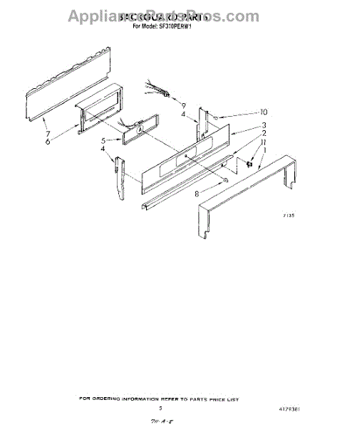 Parts for Whirlpool SF310PERW1: 04 - Backguard Parts