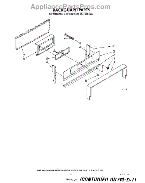 Parts for Whirlpool SF310PERW3: 04 - Backguard Parts
