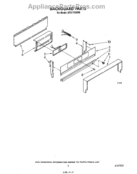 Parts for Whirlpool SF3117SRW0: 04 - Backguard Parts