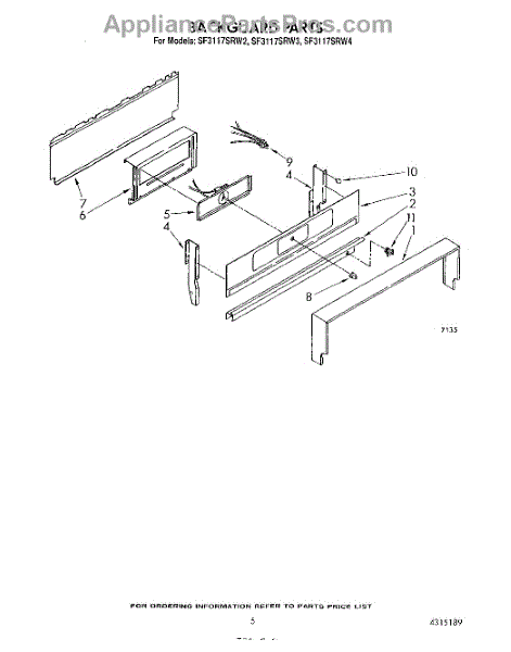 Parts for Whirlpool SF3117SRW4: 04 - Backguard Parts