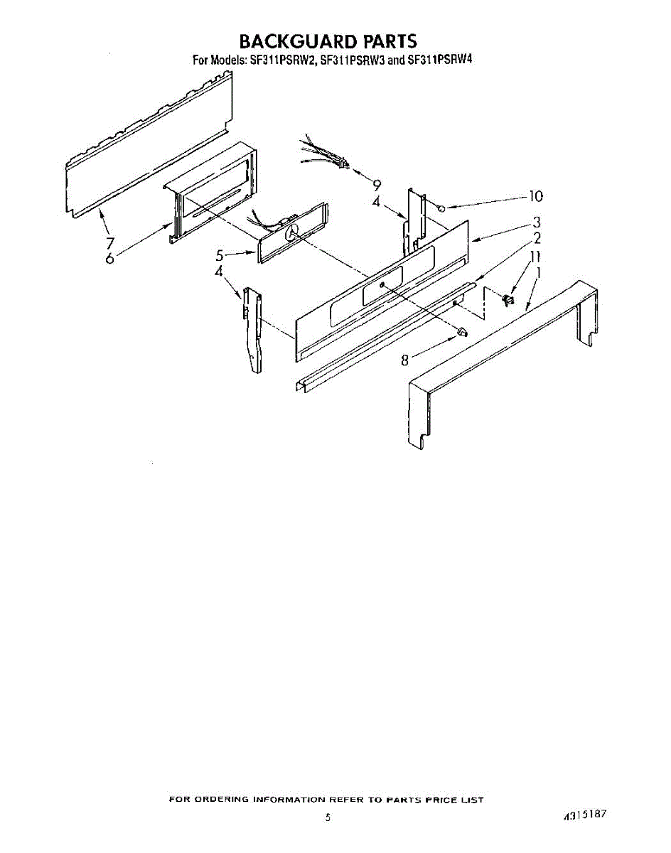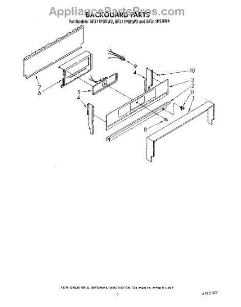 Parts for Whirlpool SF311PSRW2: 04 - Backguard Parts