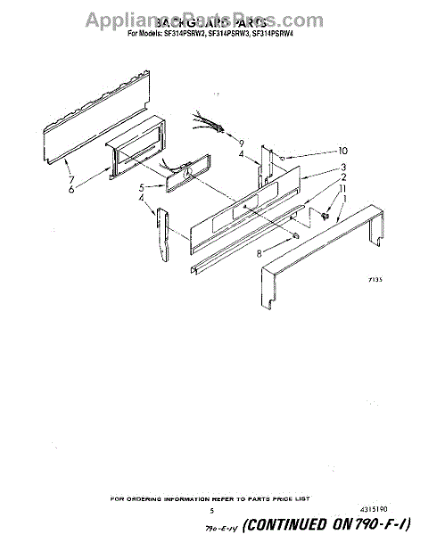 Parts for Whirlpool SF314PSRW4: 04 - Backguard Parts