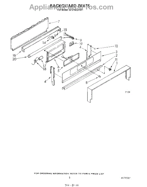 Parts for Whirlpool SF315ESRW1: 04 - Backguard Parts