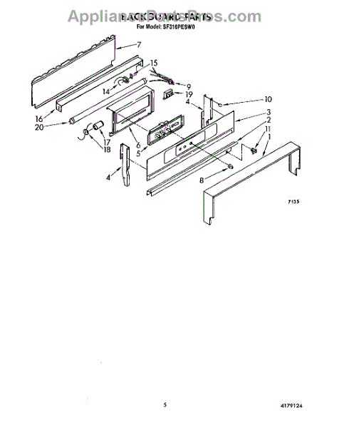 Parts for Whirlpool SF316PESW0: 04 - Backguard Parts