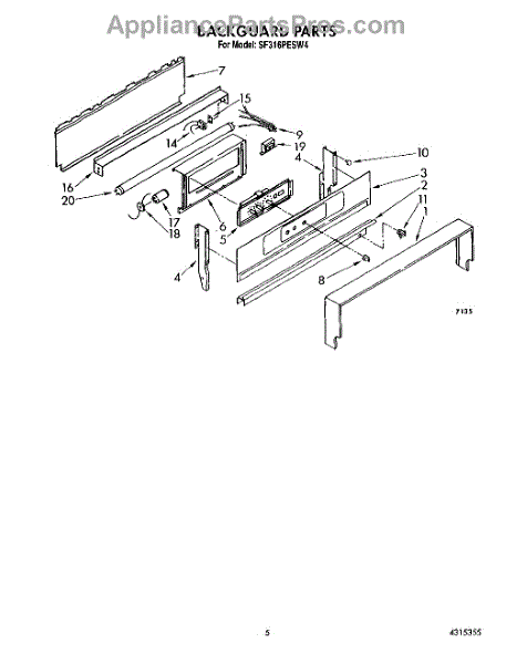 Parts for Whirlpool SF316PESW4: 04 - Backguard Parts