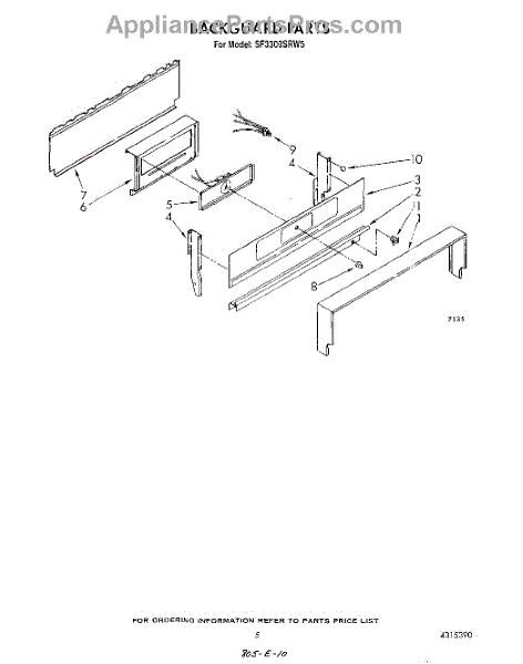 Parts for Whirlpool SF3300SRW5: 04 - Backguard Parts