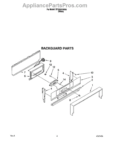 Parts for Whirlpool SF330PEWW8: 03 - Backguard Parts