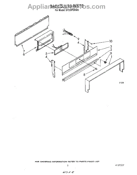 Parts for Whirlpool SF330PSRW0: 04 - Backguard Parts