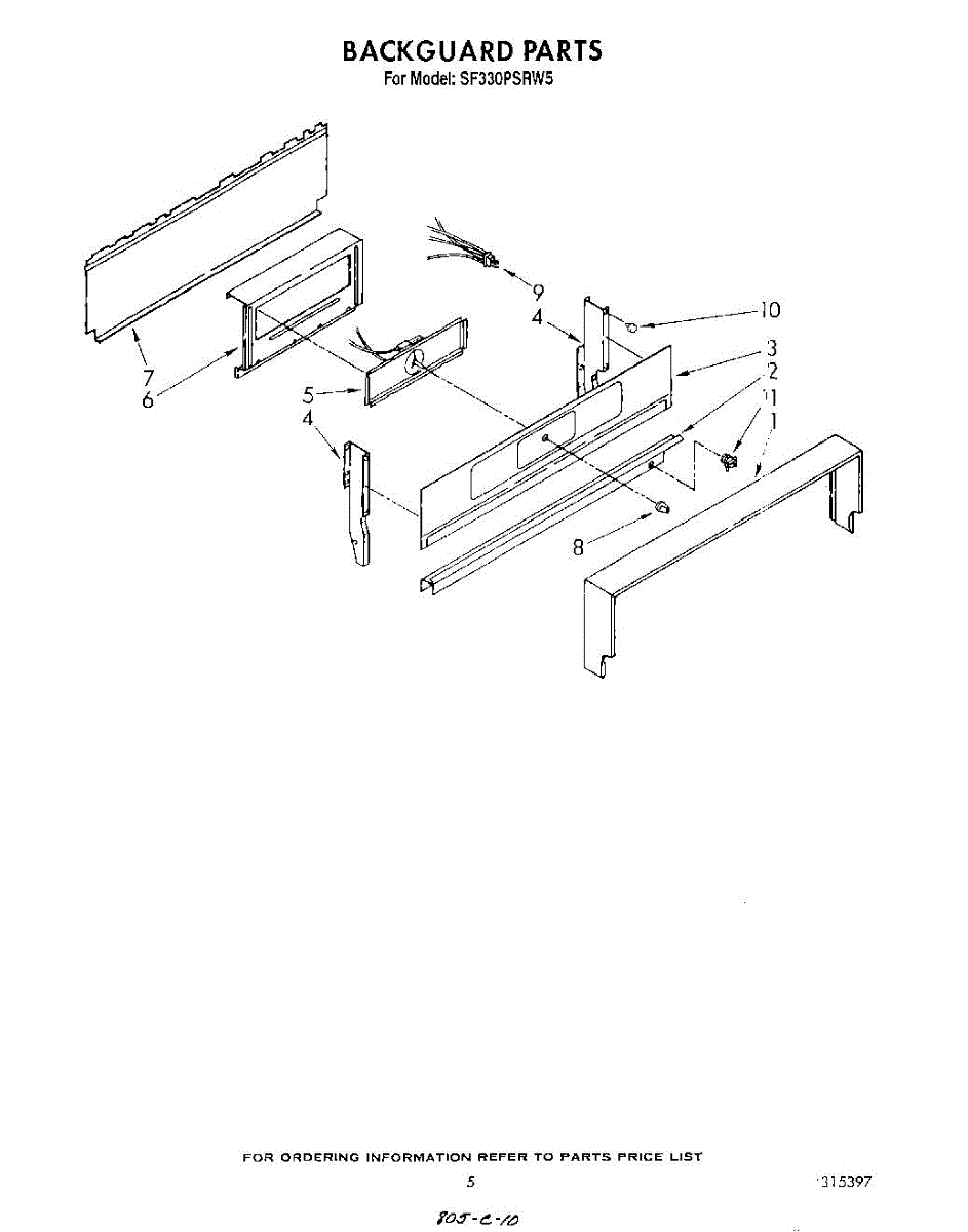 Parts for Whirlpool SF330PSRW5: 04 - Backguard Parts