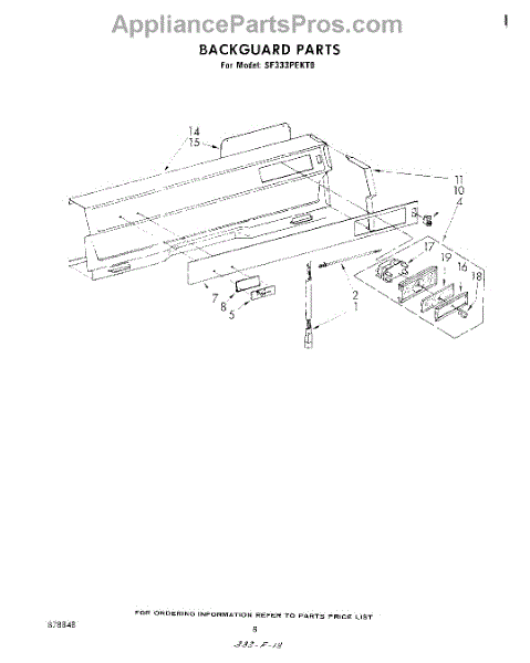 Parts for Whirlpool SF333PEKT0: 05 - Backguard Parts