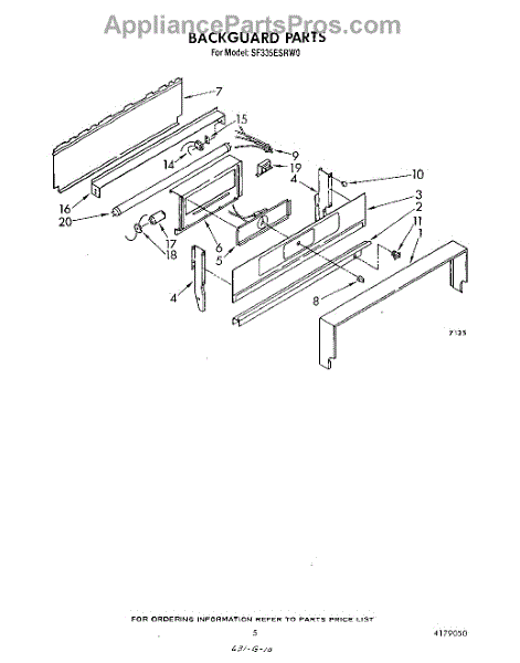 Parts for Whirlpool SF335ESRW0: 04 - Backguard Parts