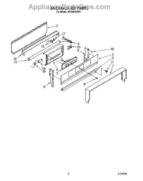 Parts for Whirlpool SF336PESW1: 04 - Backguard Parts