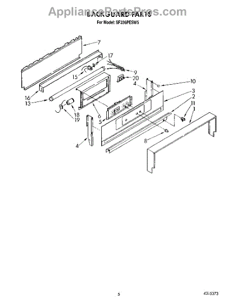 Parts for Whirlpool SF336PESW5: 04 - Backguard Parts