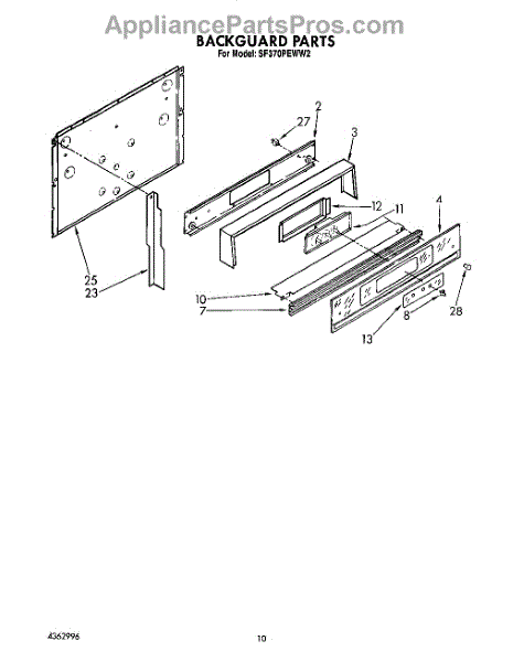 Parts for Whirlpool SF370PEWN2: 07 - Backguard Parts