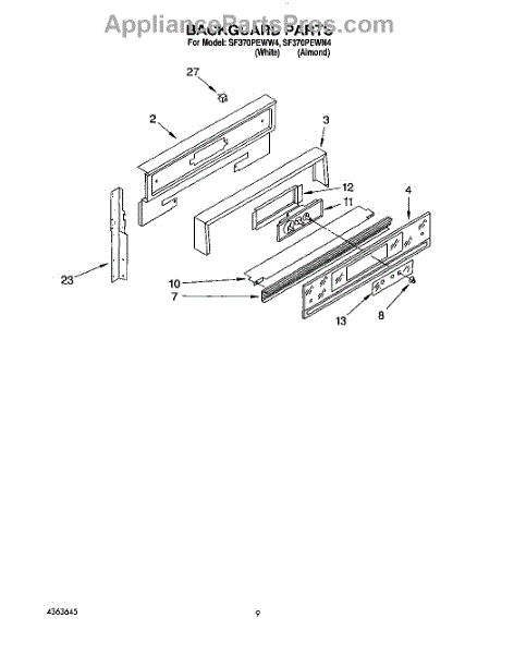 Parts for Whirlpool SF370PEWN4: 06 - Backguard Parts