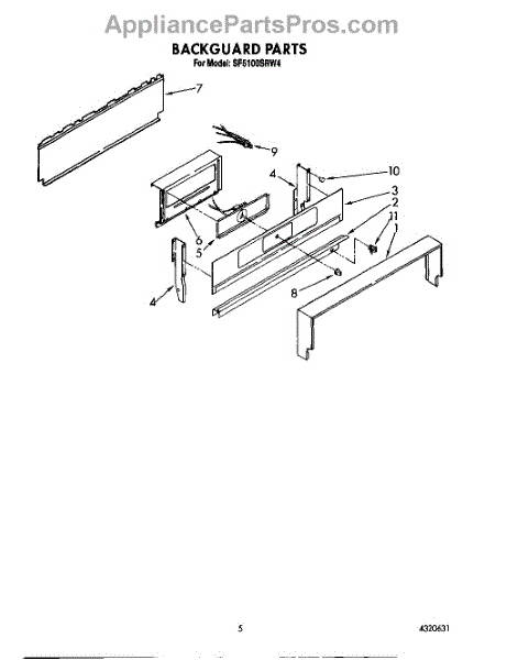 Parts for Whirlpool SF5100SRW4: 05 - Backguard Parts