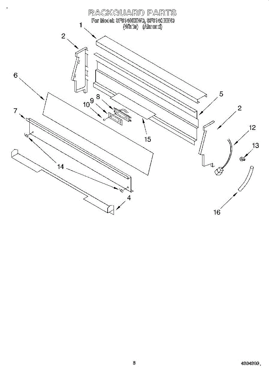 Parts for Whirlpool SF5140EEW0: 04 - Backguard Parts
