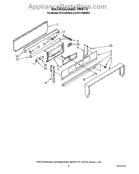 Parts for Whirlpool SF5140ERW5: 05 - Backguard Parts