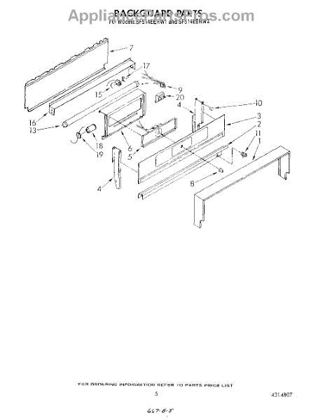 Parts for Whirlpool SF514EERN1: 05 - Backguard Parts