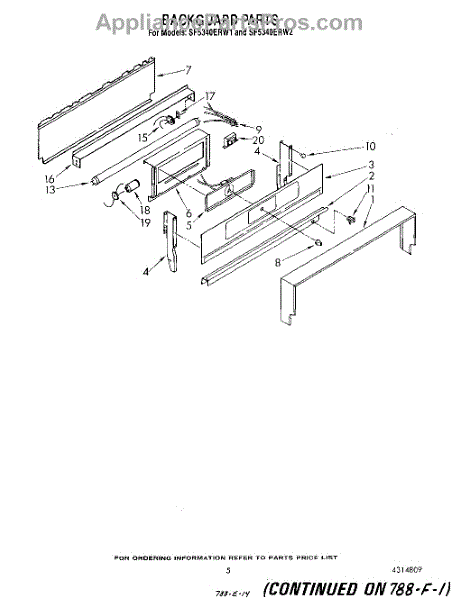 Parts for Whirlpool SF5340ERN2: 05 - Backguard Parts