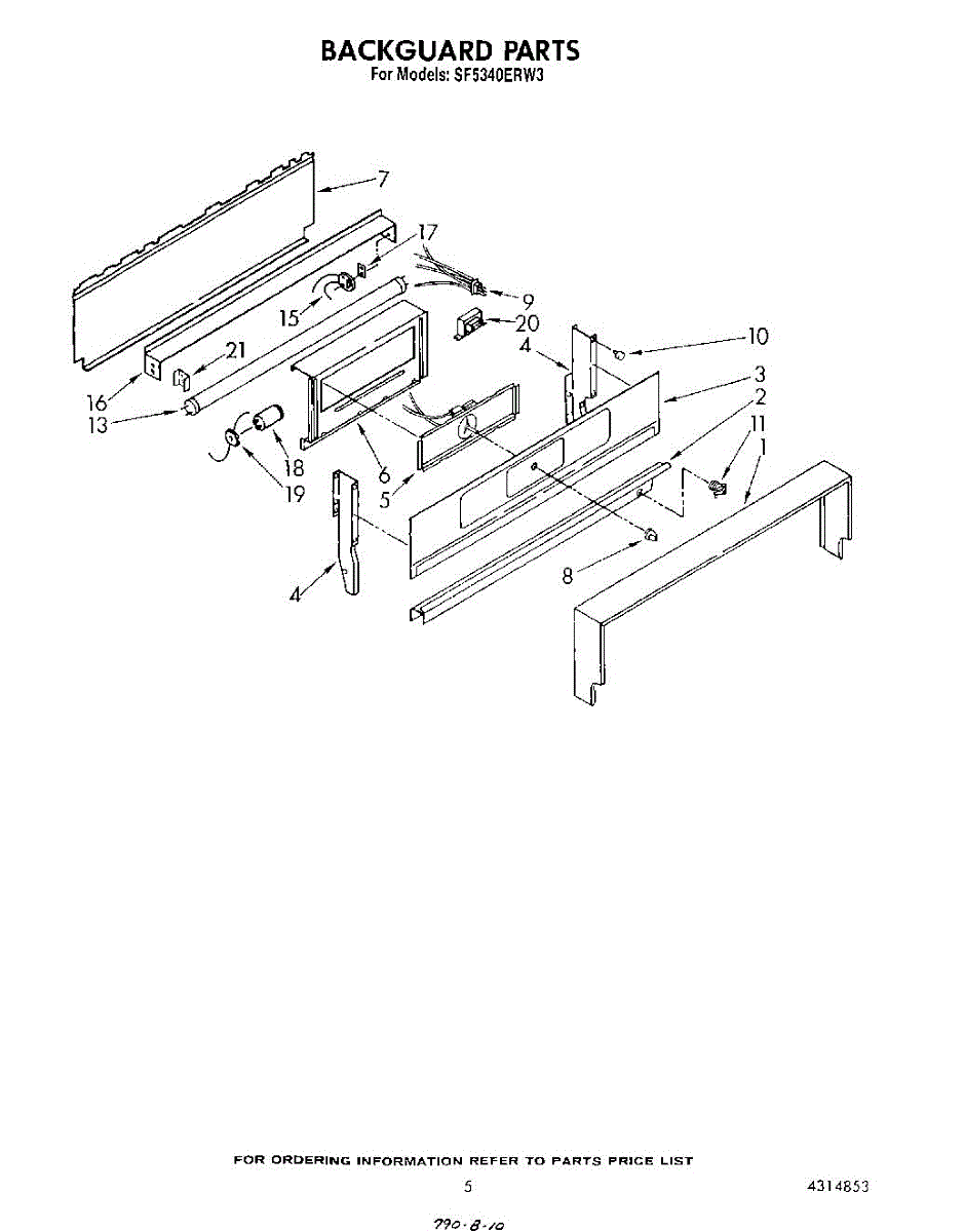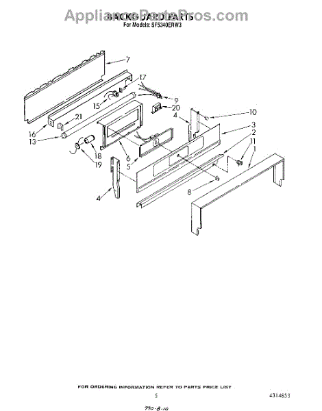 Parts for Whirlpool SF5340ERW3: 05 - Backguard Parts