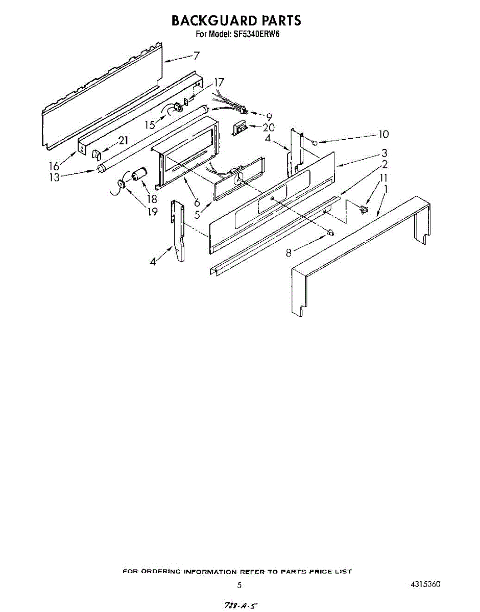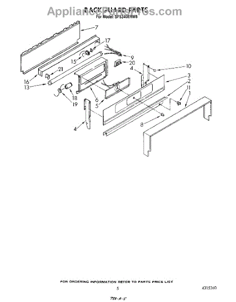 Parts for Whirlpool SF5340ERW6: 05 - Backguard Parts