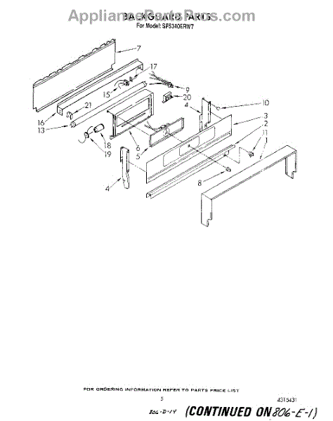Parts for Whirlpool SF5340ERW7: 05 - Backguard Parts