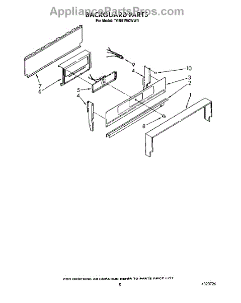 Parts for Whirlpool TGR51W0WN0: 04 - Backguard Parts