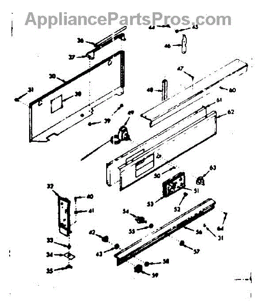 Mounting screw for ranges, ovens, and cooktops. Secures panels, brackets, or internal components. Replace if stripped, missing, or damaged during repair.