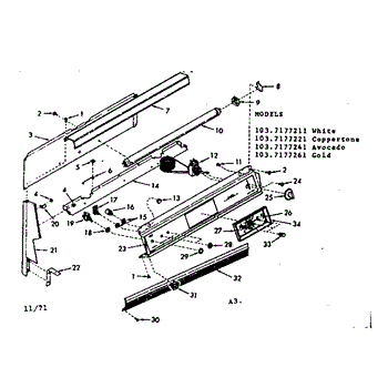 Parts for Kenmore 103.7177211 (1037177211, 103 7177211): Backguard Section Parts