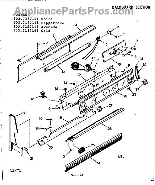 Parts for Kenmore 103.7187121 (1037187121, 103 7187121): Backguard Section Parts