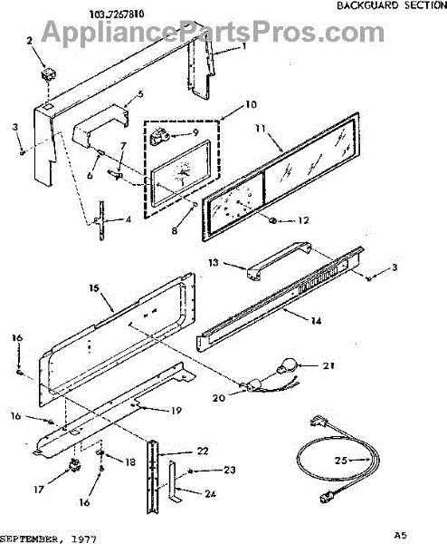 Parts for Kenmore 103.7267810 (1037267810, 103 7267810): Backguard Section Parts