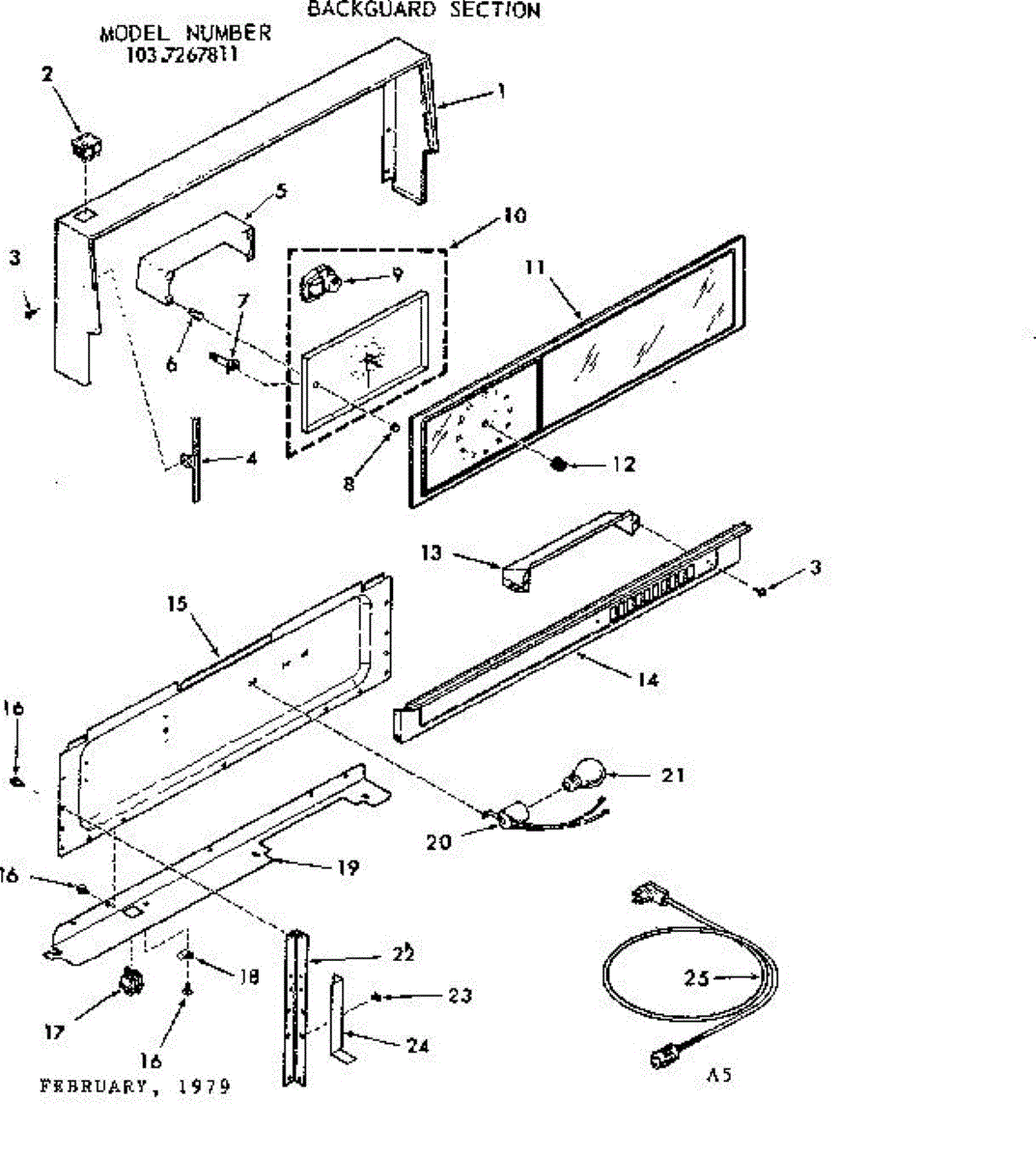 Parts for Kenmore 103.7267811 (1037267811, 103 7267811): Backguard Section Parts