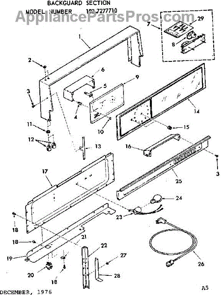 Parts for Kenmore 103.7277710 (1037277710, 103 7277710): Backguard Section Parts